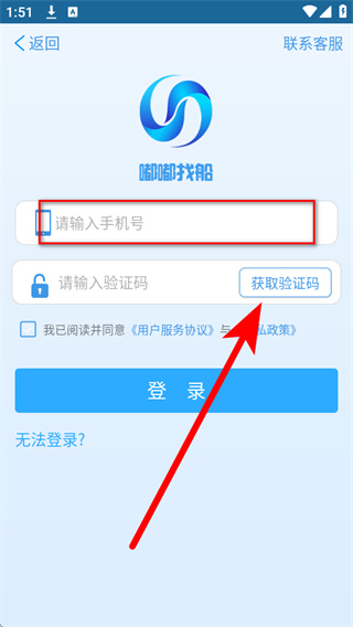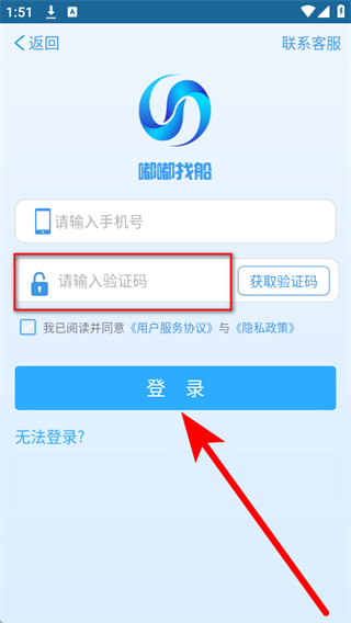 4、将收到的验证码填入验证码输入框,勾选相关协议,点击登录完成账号登录。