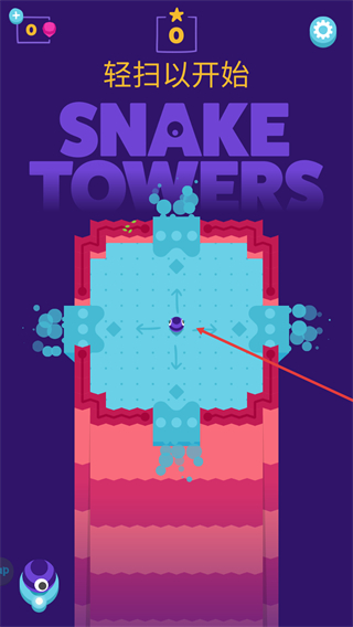 1、轻扫屏幕开始游戏,操控紫色蛇形角色在平台移动,收集目标物品。