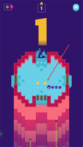 2、控制蛇形角色收集黄色道具,积累分数,当前关卡进度提升至1。