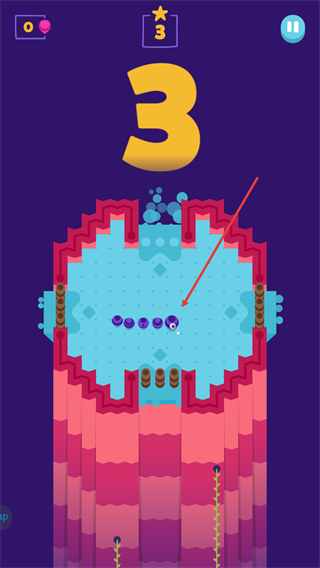 3、继续收集紫色道具,延长蛇身,将关卡分数推进至3。