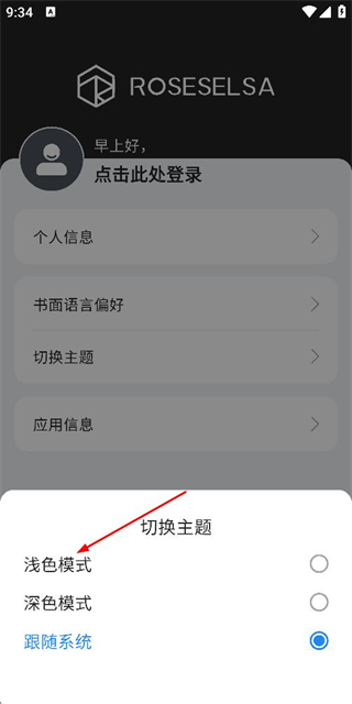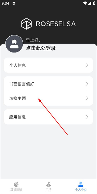 2、在个人中心页面点击切换主题选项,弹出主题选择弹窗。