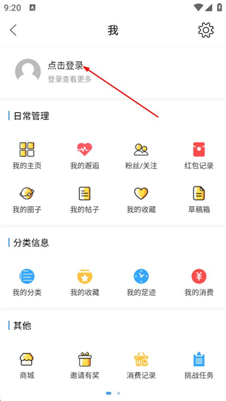 2、在个人中心页面,点击点击登录区域,进入登录选择页面。