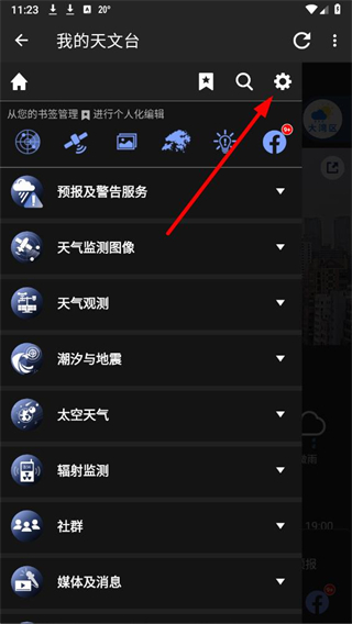1、打开我的天文台app,点击左上角菜单按钮,展开功能菜单。