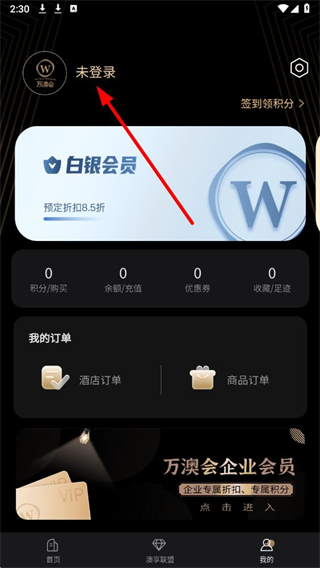 1、在万澳会app的首页界面中,点击底部我的选项,进入个人相关操作页面。