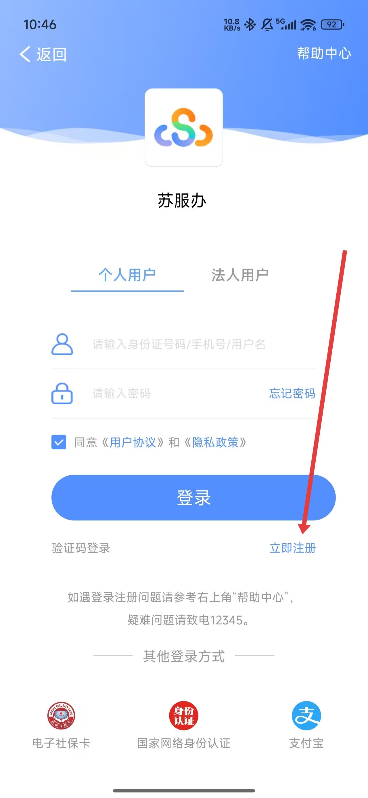 3、在进入到登录页面后,若没有账号可以点击下方立即注册按钮,进行注册。