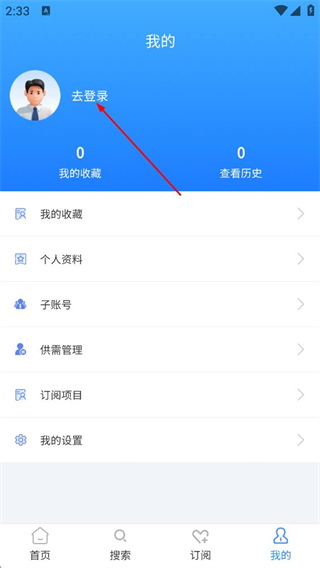 2、在个人中心页面,点击去登录选项,进入登录页面。