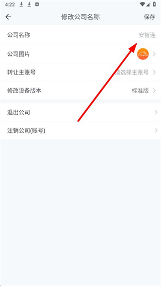 4、在修改公司名称页面,点击公司名称栏修改内容,完成后点击右上角的保存按钮,即可完成公司名称的修改。