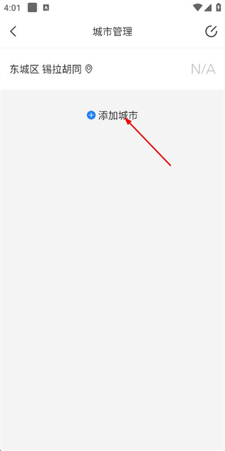 2、在城市管理页面点击添加城市选项,进入城市选择页面。