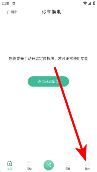 1、打开秒享换电,点击底部我的,进入个人页面。