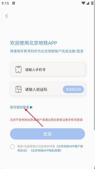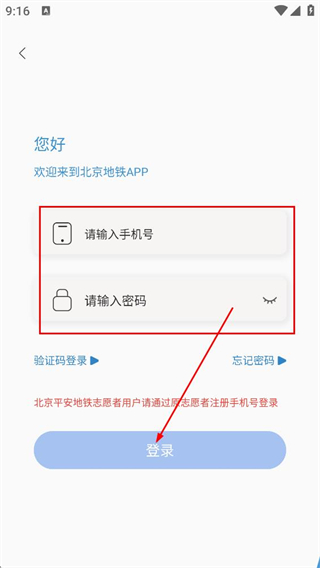 4、在账号密码登录页,填写手机号和密码,点击登录按钮,完成登录。