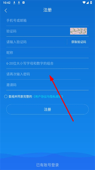 3、在注册界面依次填写手机号或邮箱,获取并输入验证码,设置密码,勾选协议后点击注册完成账号创建。