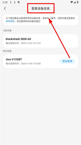 4、在登录设备页面,即可查看当前及其他登录该账号的设备信息。