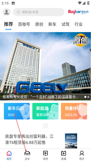 1、进入中国买车网首页后,点击底部的选车按钮,可进入选车页面。