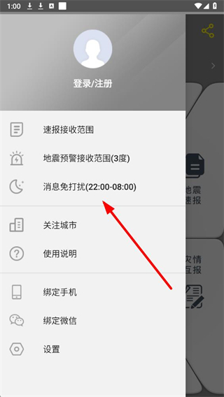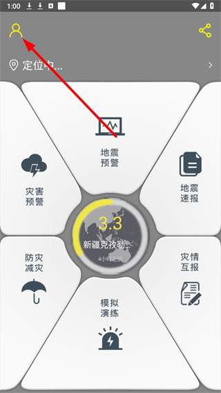1、进入中国地震预警app,点击左上角的人形图标,展开个人相关功能菜单页面。