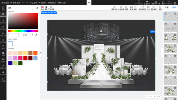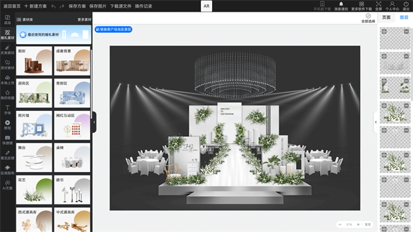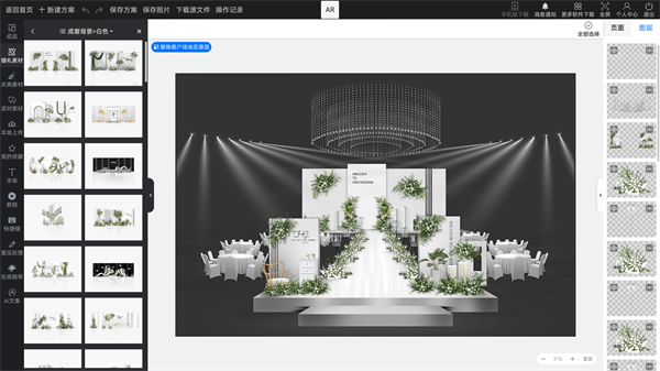 婚礼懒设计软件专为婚庆工作相关人员提供了工作软件,利用该工具能够轻松的设置婚礼舞台的效果,并在这里能够进行婚庆舞台的流畅进行制作,在这里能够看到更多有关婚礼的各种素材内容,并且在针对如今的婚庆相关的信息中,通过不断的努力和优质的展现效果,通过该工具能够一键生成各种不同的婚礼成果图,更加直观快速的给予新人对于婚礼场景效果能够快速看到呈现的效果。