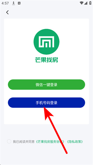 1、打开芒果找房,在首页底部点击立即登录,进入登录方式选择页面。