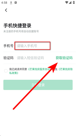3、在手机快捷登录界面的手机号框中填写手机号,然后点击获取验证码。