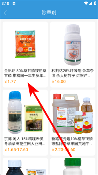 3、在除草剂列表里,点击目标商品,进入该商品的详情页面。