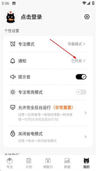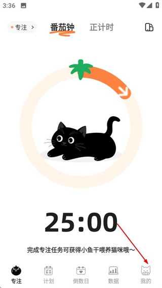 1、进入喵喵自律器,点击底部的我的选项,可进入个人设置页面。