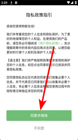 1、打开物联在线,在页面点击同意并继续,进入登录注册页面。