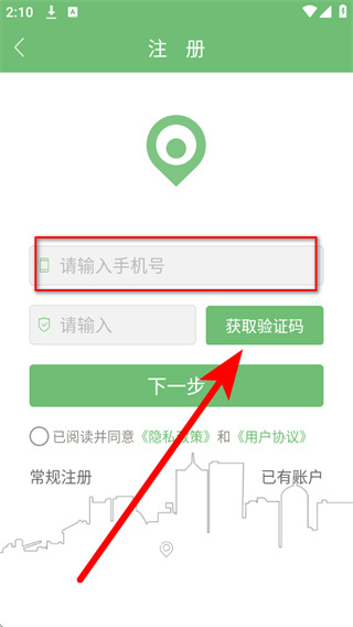 3、在注册页面的手机号框中填写要注册的手机号,然后点击获取验证码获取短信验证码。
