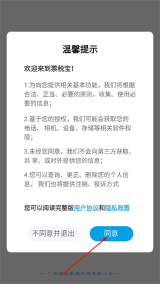 1、在页面,阅读用户协议和隐私政策后,点击同意,进入登录的页面。