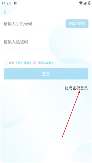 2、在登录页面,点击账号密码登录选项,切换至账号密码登录的页面。
