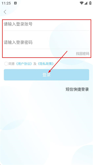 3、在账号密码登录,填写登录账号和登录密码,点击登录,完成登录。