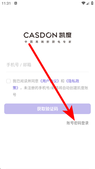 1、在凯度生活家登录页面,点击账号密码登录,进入账号密码登录页面。