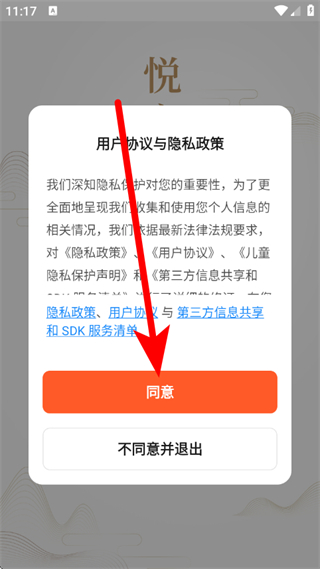 1、打开德韵智能,在弹窗点击同意,进入登录注册选择页面。