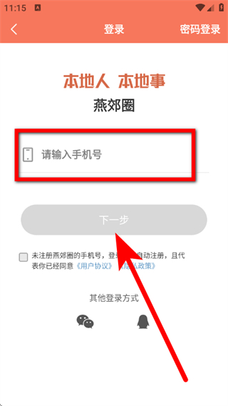 3、在登录页面,输入手机号,勾选后,点击下一步。