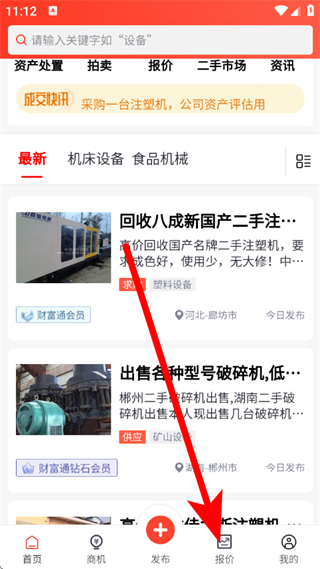 1、在中国回收商网,点击底部报价,进入行情报价页面。