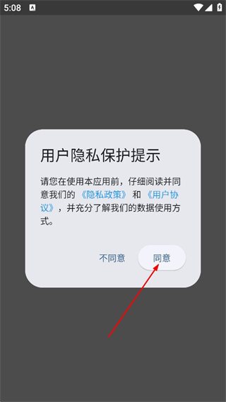 1、在用户隐私保护提示弹窗中,点击同意,进入登录页面。