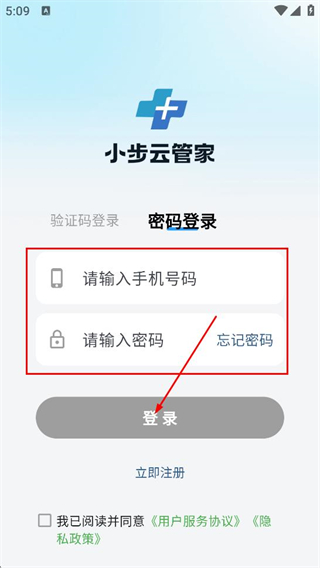 3、在密码登录页面,填写手机号码和密码后,并点击登录按钮,完成登录。