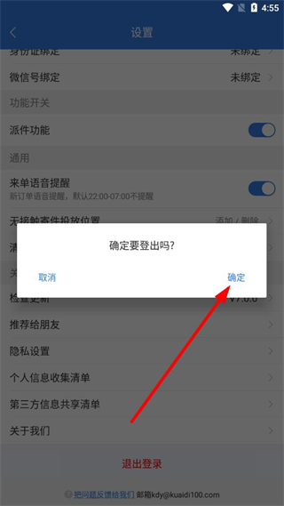 3、在设置界面里,找到退出登录选项并点击,弹出确认弹窗。