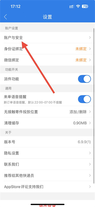 2、进入设置页面后,点击账户与安全选项,进入账户与安全页面。