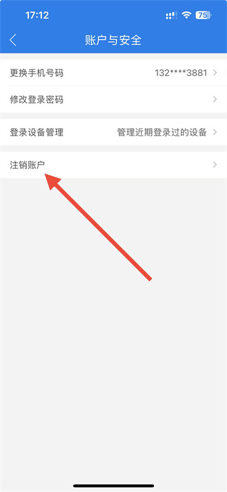 3、在账户与安全页面,点击注销账户选项,进入注销账号页面。