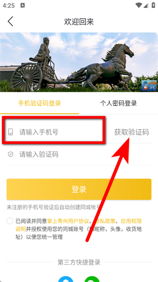 3、在手机验证码登录页面,输入手机号,点击获取验证码。