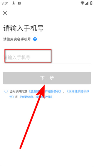 3、在手机号栏填写本人实名绑定的手机号码,勾选相关协议后,点击下一步。