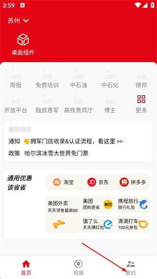 2、在优待地图首页,点击底部我的选项,进入个人中心页面。
