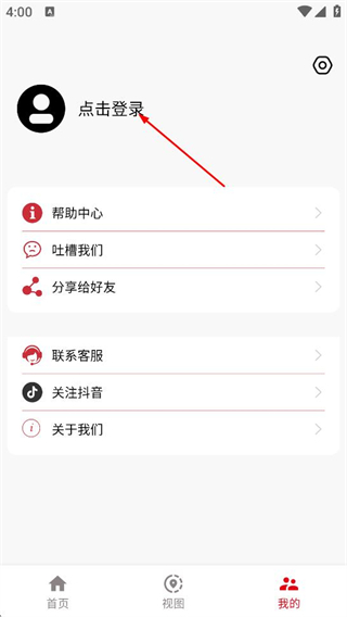 3、在个人中心页面,点击点击登录区域,即可唤起登录选项。