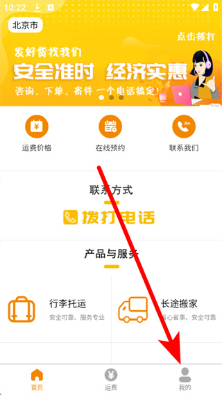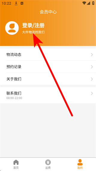 1、打开安能物流,点击底部导航栏的我的,进入会员中心页面。