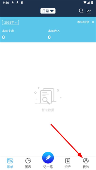 1、进入简易家庭记账本后,点击首页底部我的选项,进入个人页面。
