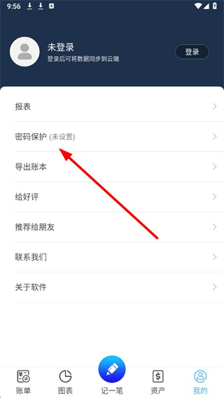 2、在个人页面中,找到密码保护选项并点击,跳转至设置密码的信息填写页面。
