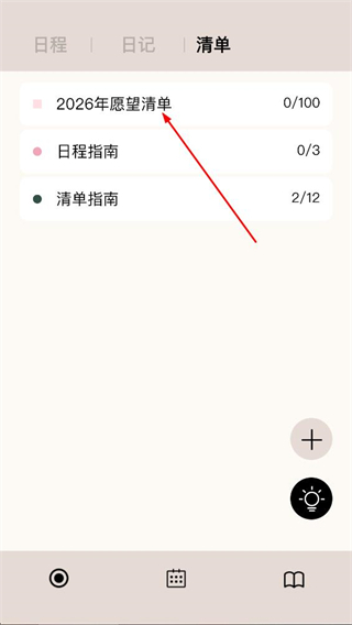 4、在2026年愿望清单详情页,我们可勾选对应事项的完成记录。