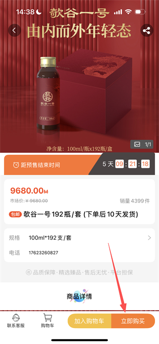 3、在商品详情页面,点击立即购买按钮,会弹出登录页面。