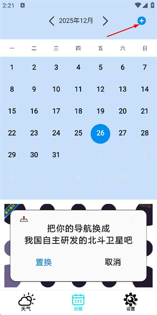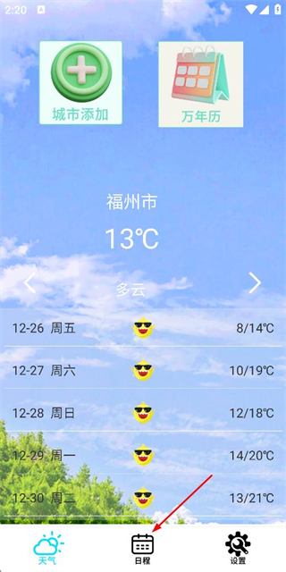 1、在天气应用页面点击底部的日程选项,进入日历页面。