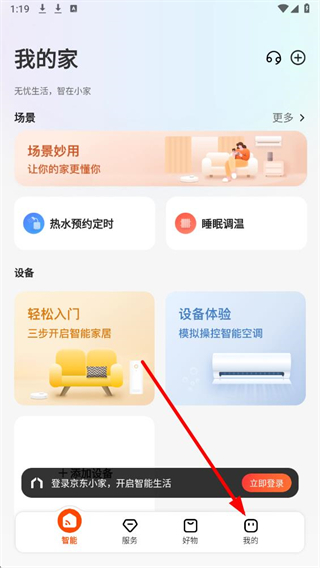 1、进入京东小家app,点击底部我的选项,进入对应操作页面。