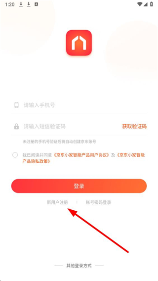 2、在登录界面,点击新用户注册选项,进入手机快速注册的流程页面。