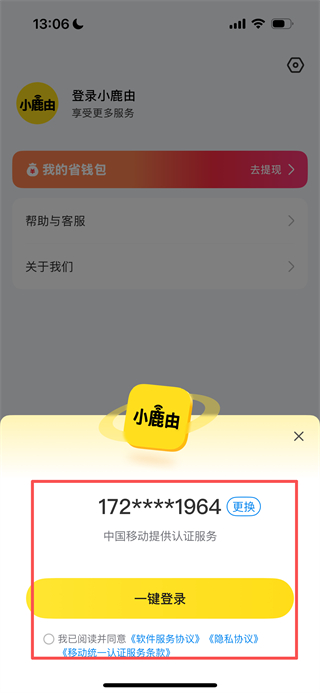 3、在登录弹窗中,勾选协议后点击一键登录按钮,即可完成账号登录。